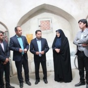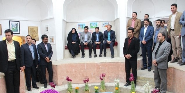 بازدید جمعی از اعضای ستاد خدمات سفر یزد از نمایشگاه آثار هنری و صنایعدستی در حمام موقوفه دربند میرزا تفت