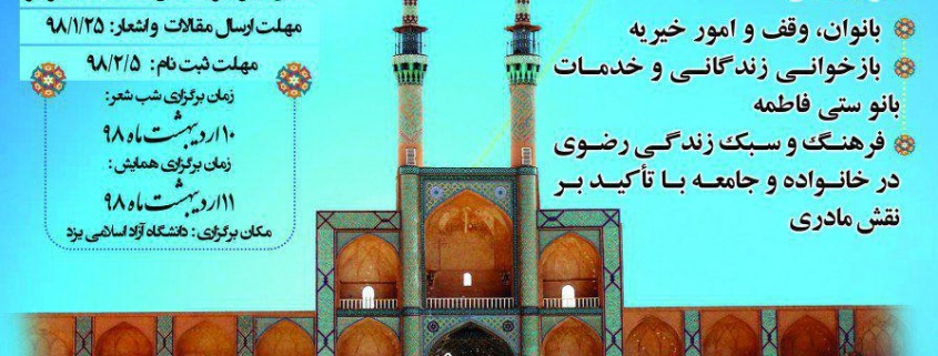به گزارش روابط عمومی اداره کل میراث فرهنگی، صنایع دستی و گردشگری استان یزد :”سید مصطفی فاطمی” ضمن اعلام این خبر، گفت: این همایش دهم و یازدهم اردیبهشت ماه امسال به همراه مراسم شب شعر با هدف ترویج فرهنگ و سبک زندگی رضوی در بین خانواده و جامعه با تاکید بر نقش مادران و همچنین وقف و امور خیریه برگزار میشود.