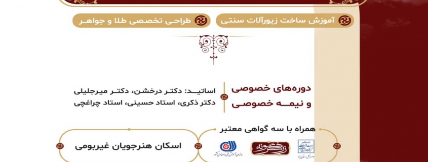معاون صنایع دستی استان یزد افزود: در این دوره، ساخت زیورآلات سنتی و طراحی تخصصی طلا و جواهر، جهت علاقمندان آموزش داده می شود و در پایان گواهی مهارت برای شرکت کنندگان صادر خواهد شد.