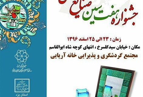 جشنواره هفت سین صنایع دستی برای اولین بار در استان یزد و با هدف حفظ و احیای سنت های اصیل و ایجاد شور و نشاط اجتماعی بین شهروندان در راستای حفظ و احیای فرهنگ اسلامی به همت انجمن صنایع دستی هور نگار یزد و با همکاری اداره کل میراث فرهنگی، صنایع دستی و گردشگری استان یزد و سازمان فرهنگی اجتماعی و ورزشی شهرداری در مجتمع گردشگری خانه آریایی برگزار شد.