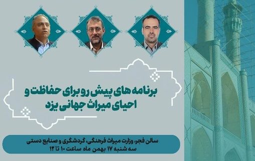 به گزارش روابطعمومی اداره کل میراثفرهنگی، گردشگری و صنایعدستی استان یزد ، در ادامه سلسله نشستهای تخصصی معاونت میراث فرهنگی، نشست «برنامه های پیش رو برای حفاظت و احیای میراث جهانی یزد» سهشنبه ۱۷ بهمن ماه ساعت ۱۰ تا ۱۲ در سالن فجر وزارت میراث فرهنگی برگزار خواهد شد.
