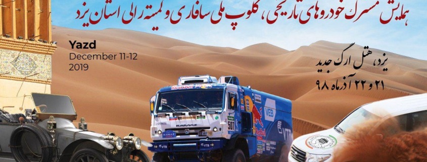 به گزارش روابط عمومی اداره کل میراث فرهنگی، گردشگری و صنایع دستی یزد، کلمندی، مدیر کلوپ ملی سافاری استان یزد روز چهارشنبه ۲۰ آذر ماه ۹۸، گفت: « نخستین همایش خودروهای تاریخی و سافاری در استان یزد پنجشنبه و جمعه ۲۱ و ۲۲ آذر در محل هتل ارگ جدید یزد برگزارمی شود.»