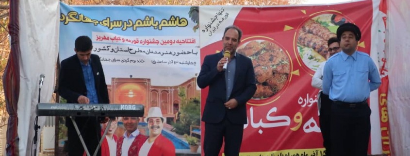 دومین جشنواره قورمه و کباب مهریز، تنها جشنواره قورمه کشور از ۱۳ آبان ماه به مدت سه روز در اقامتگاه بومگردی سرای جهانگرد شهرستان مهریز برگزار می شود.
