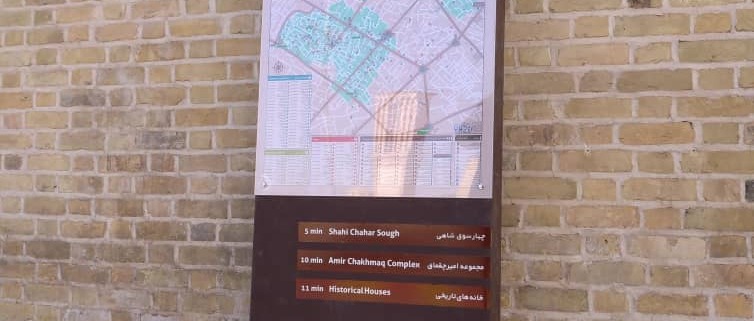 او با بیان اینکه نبود نقشه در بافت تاریخی یزد بسیار مشهود بود، اظهار داشت: «تابلو های مسیریابی و راهنمای گردشگر به دو زبان فارسی و انگلیسی طراحی شده است.»