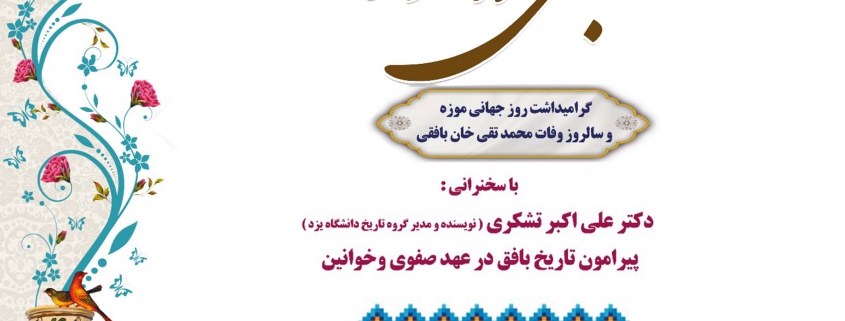 رئیس اداره میراث¬فرهنگی، گردشگری و صنایعدستی شهرستان بافق ادامه داد: «در این برنامه فرهنگی، دکتر علیاکبر تشکری بافقی نویسنده و مدیر گروه تاریخ دانشگاه یزد، پیرامون تاریخ بافق در عهد صفوی و خوانین سخنرانی خواهد کرد.»