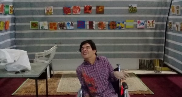 هنرمند توانخواه ویلچرنشین یزدی در یازدهمین نمایشگاه سراسری صنایع دستی یزد آثار خود را به نمایش گذاشت.