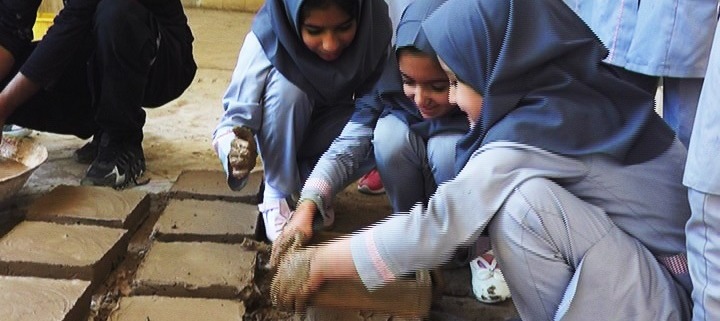 همزمان با روز جهانی بناها و محوطه های تاریخی، دانش آموزان بافقی در میدان خان بافق خشت خاطره زدند